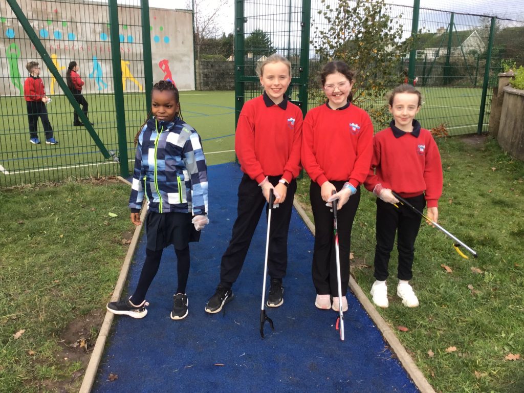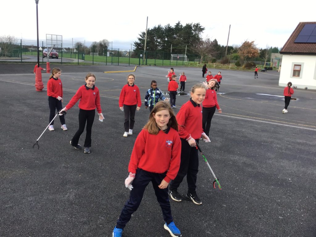 As part of our Green Schools work and to celebrate Clarecastle’s Gold Medal Status in the National Tidy Towns Awards 2025, Fourth Class decided to do an ‘Autumn Clean’ of the school grounds today. Well done to all👏🏻👏🏻🏅🏅🏅😃🍁🍂